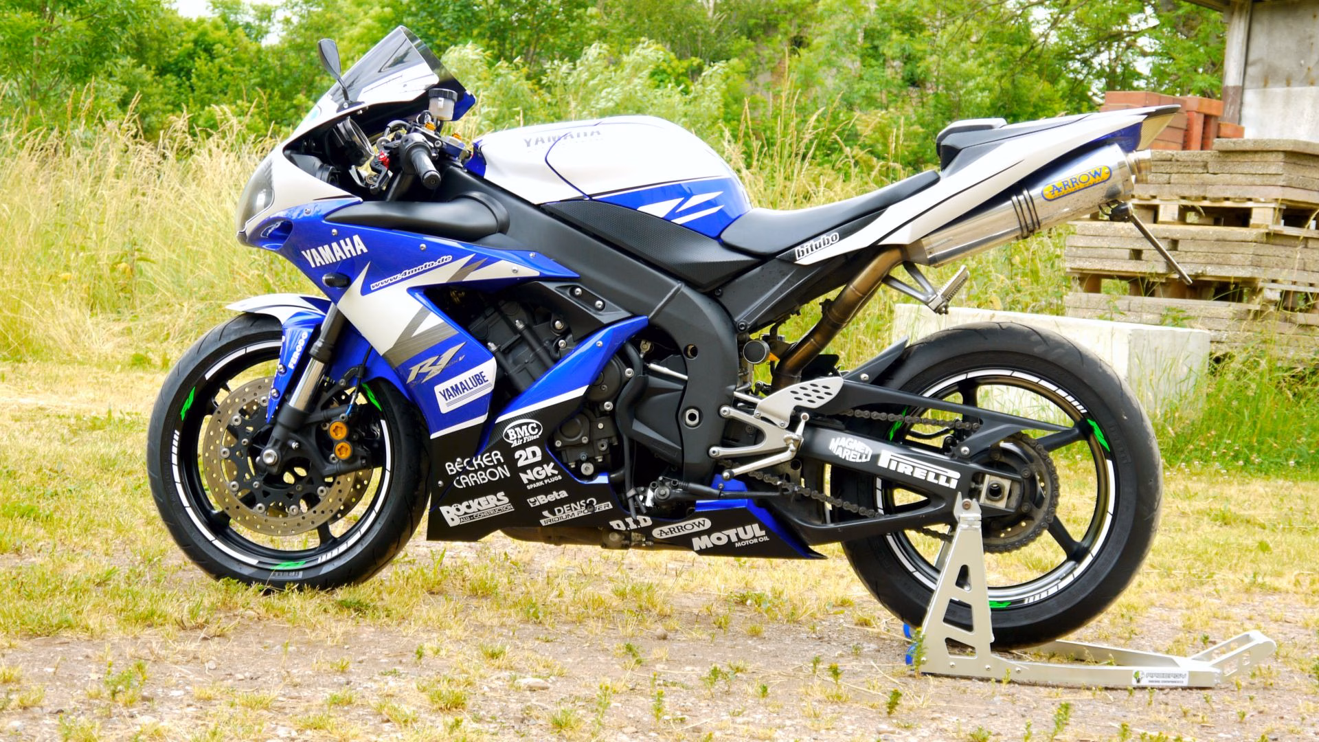 YAMAHA R1 „SBK Replica“ Design Beklebung Design aus der Superbike WM SBK / Produktion der Folie / Folierung am Motorrad Designumsetzung mit einzelnen Teilfolierungen und Plotaufklebern Ausgeführt: Juli 2014